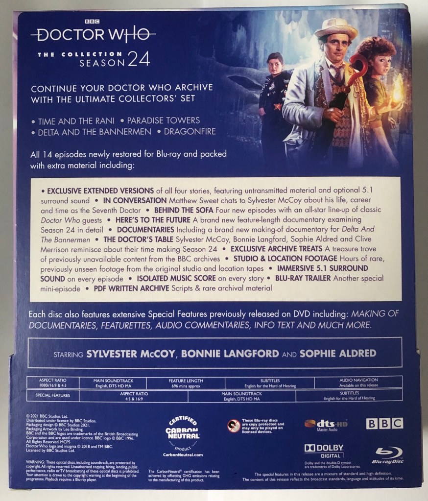 The result is that some stories and their wines here are allowed to breathe more, especially with Time and the Rani and Delta and the Bannermen, and I’m glad to see they were included here.
